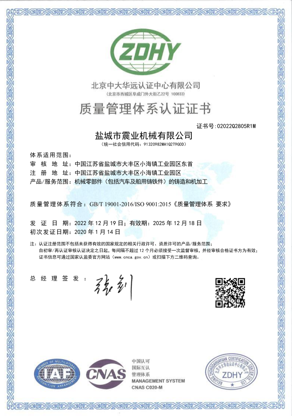 鹽城震業(yè)機(jī)械股份有限公司成立于2017年8月,注冊(cè)資本4116萬(wàn)元人民幣,是一家集鑄造、機(jī)加工和熱處理于一體的企業(yè)。自成立以來(lái)企業(yè)獲得國(guó)家級(jí)高新技術(shù)企業(yè)、省級(jí)專(zhuān)精特新企業(yè)、江蘇省瞪羚企業(yè)、江蘇省民營(yíng)科技企業(yè)、省五級(jí)星上云企業(yè)、創(chuàng)新型中小企業(yè)、科技型中小企業(yè)等榮譽(yù)。