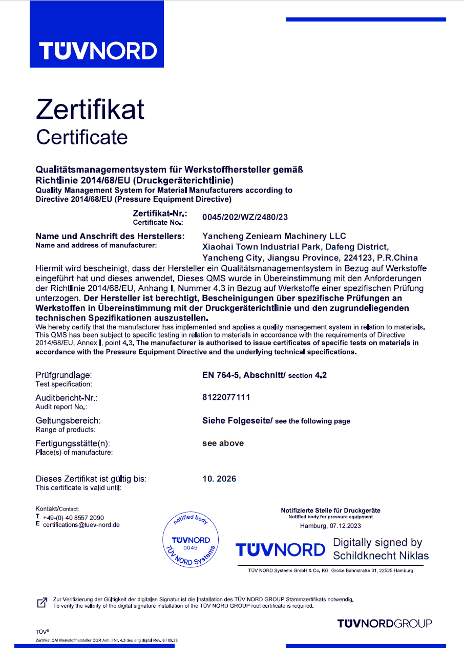 企業(yè)先后通過(guò)了ISO9001;英國(guó)船級(jí)社LR、美國(guó)船級(jí)社ABS、法國(guó)船級(jí)社BV、中國(guó)船級(jí)社CCS、挪威船級(jí)社DNV、韓國(guó)船級(jí)社KR共六家船級(jí)社認(rèn)證;歐盟PED和AD2000認(rèn)證;汽車(chē)零部件TS16949認(rèn)證。擁有30項(xiàng)專(zhuān)利,其中3項(xiàng)發(fā)明專(zhuān)利,27項(xiàng)實(shí)用新型專(zhuān)利。